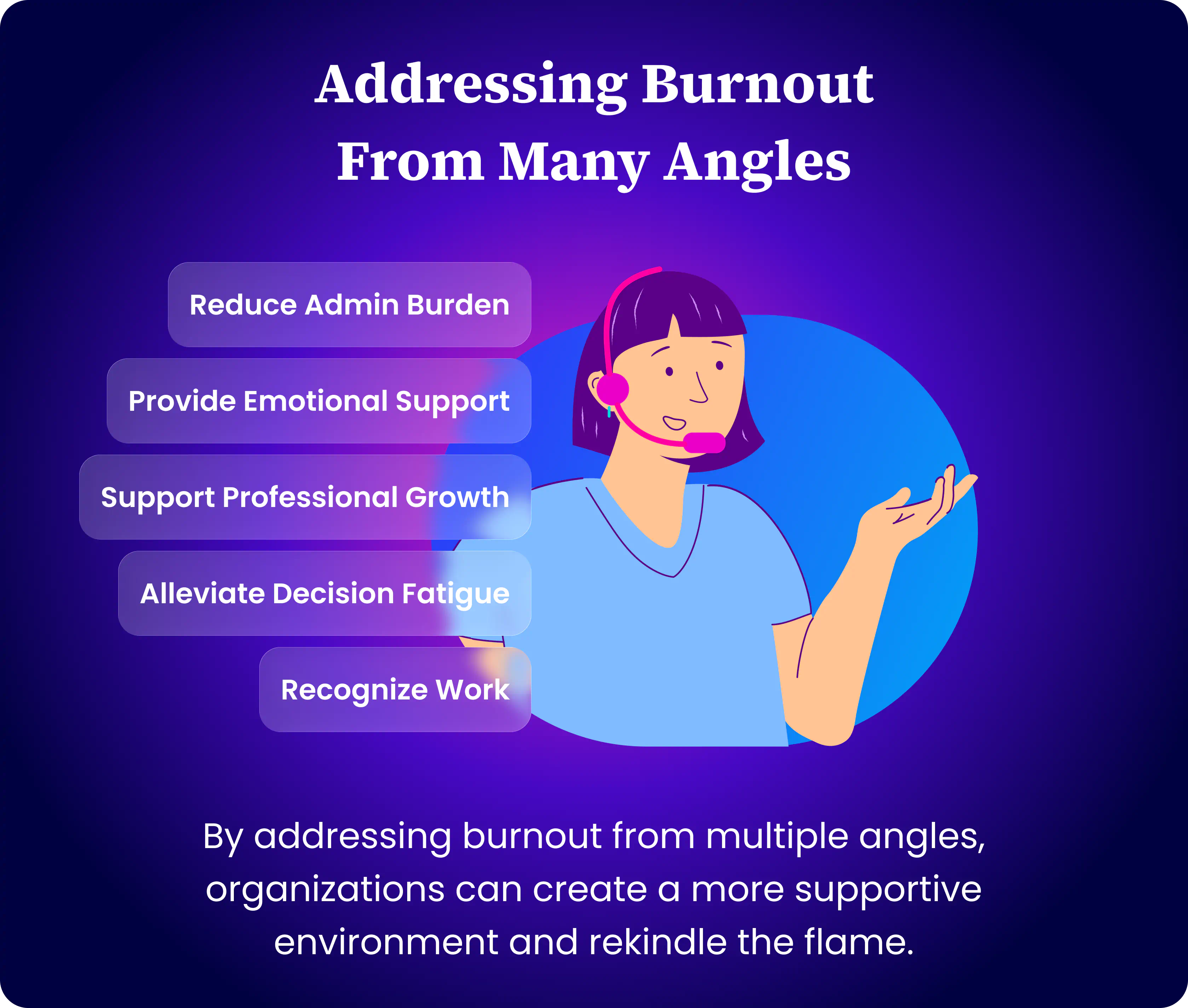 - Individual Level: Providing meaningful self-care resources and clear boundaries