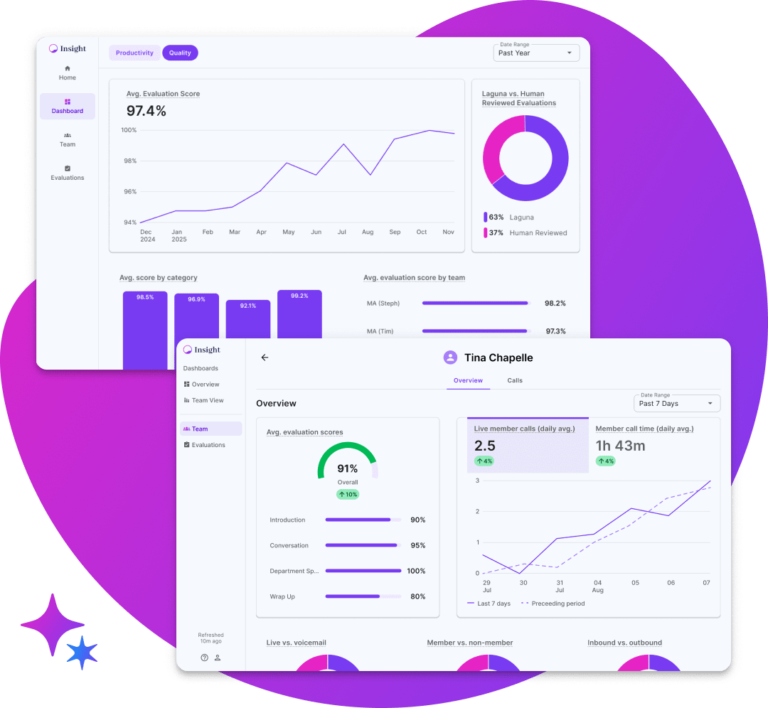 Laguna Insight automates 100% of quality evaluations and gives you actionable intelligence that empowers quality managers and improves performance across care management teams.