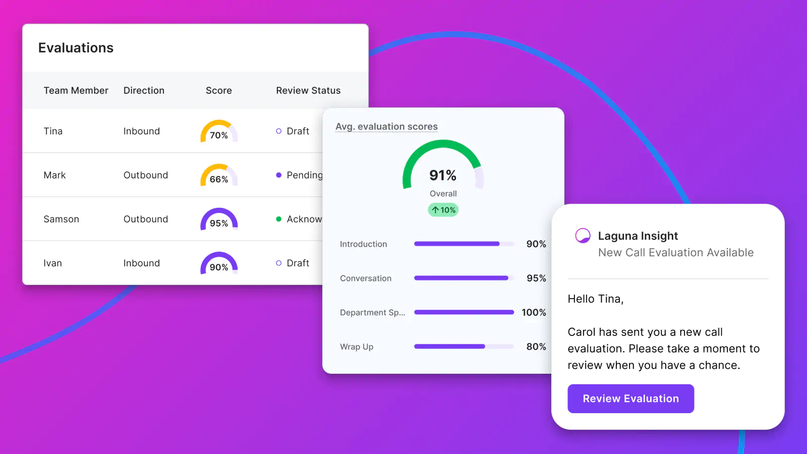 Provide objective, consistent evaluations backed by transcript evidence—send directly to your team members for their review.